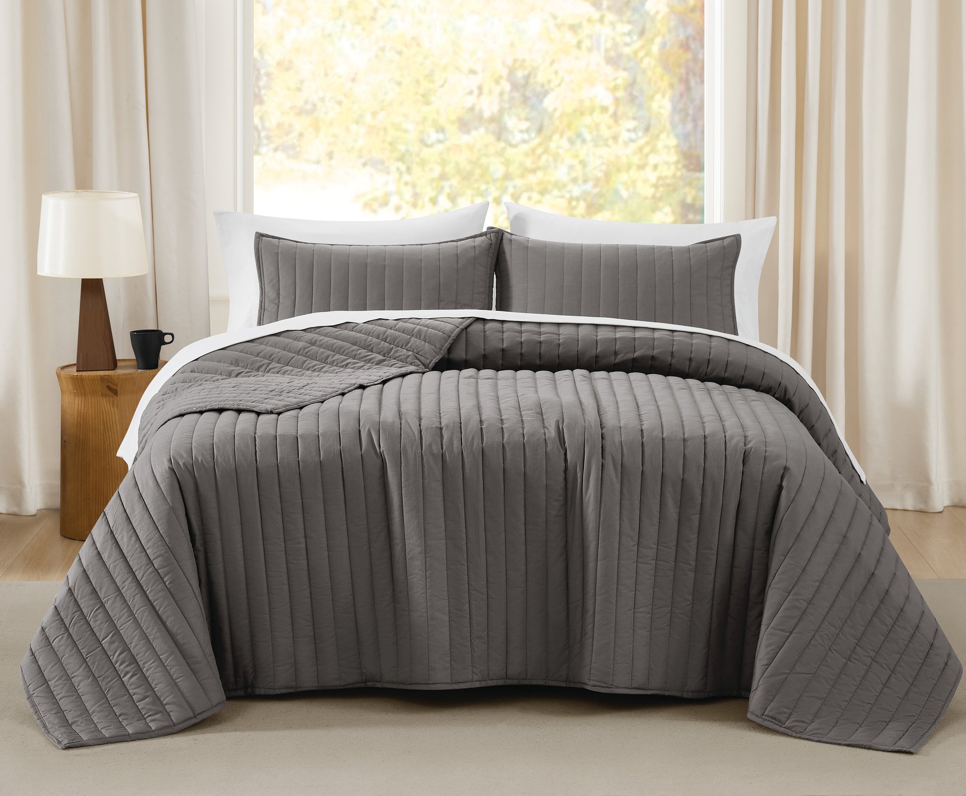 Introducing the Brooklyn Loom Oversized Cotton Percale Quilt Set, a luxurious bedding ensemble that redefines comfort and style. Designed to accommodate today's thicker mattresses, this set includes a generously sized quilt and coordinating shams providing a complete solution for your bedroom decor needs. Featuring a traditional solid color look, this quilt set effortlessly complements any bedroom decor, adding a touch of timeless elegance. Elevate your bedding experience with the Brooklyn Loom Oversized Cotton Percale Quilt Set, designed to provide luxurious comfort and style while effortlessly accommodating today's thicker mattresses. Available in both Queen and King sizes, this quilt set offers ample coverage and versatility. The Queen quilt measures a spacious 98 inches wide by 94 inches long, while the King quilt boasts an even larger size of 112 inches wide by 94 inches long, ensuring that it easily covers thicker mattresses with a graceful drape. Crafted from premium 100% cotton with a 200 thread count percale weave, the fabric of this quilt set offers exceptional softness and breathability, ensuring a comfortable and restful night's sleep. The quilt is generously filled with plush 100% polyester fiber filling, providing just the right amount of warmth and coziness without feeling heavy. Brooklyn Loom is dedicated to delivering products of exceptional quality and safety. This quilt set is OEKO-TEX Standard 100 Certified, guaranteeing that it meets stringent global standards for textile safety and environmental sustainability.