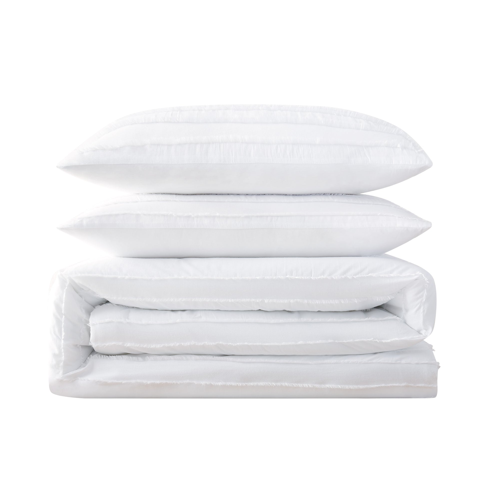 • Full/Queen: Includes one comforter (90x90 inches) and two standard shams (20x26 inches) with a fold enclosure.