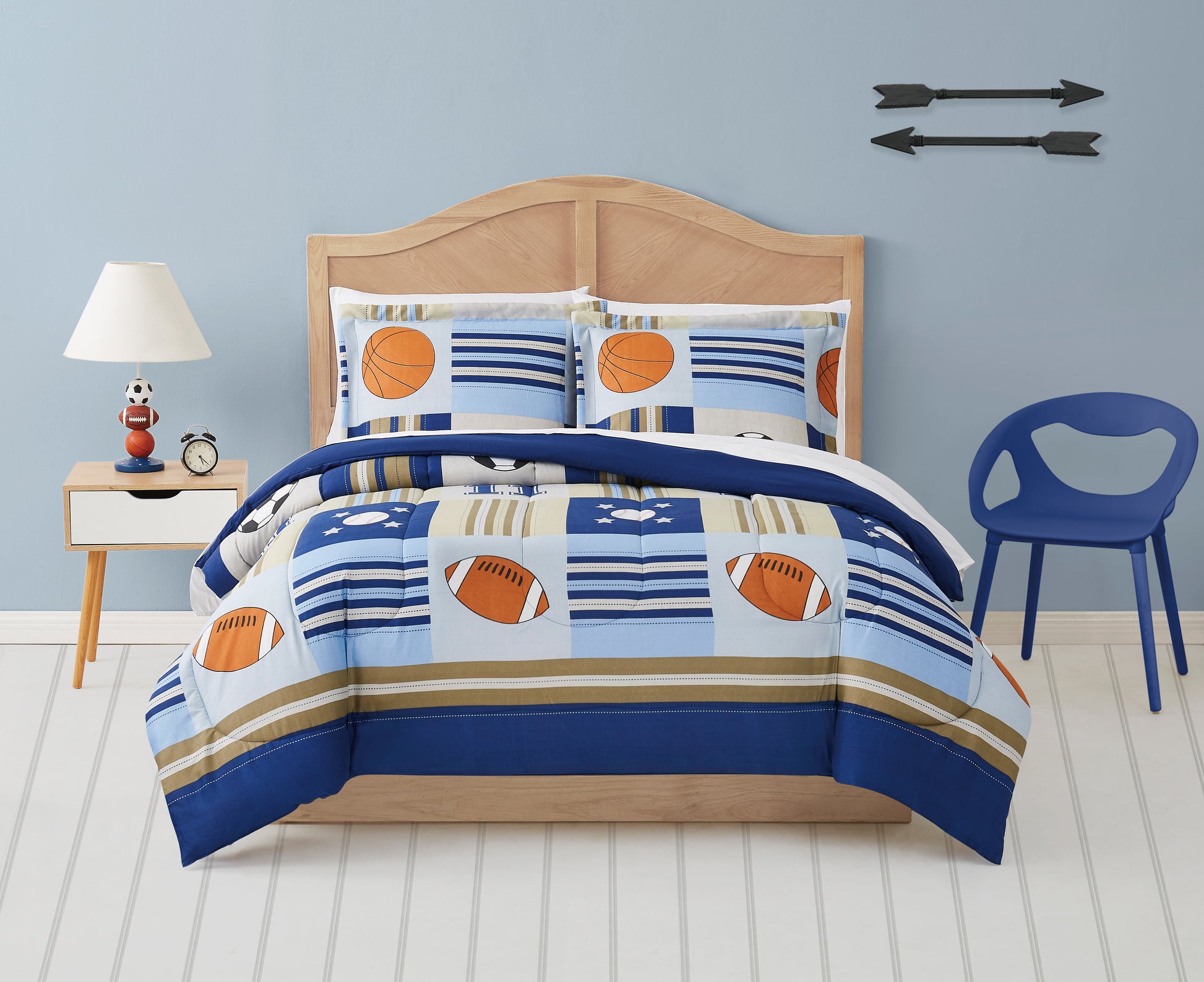 Celebrate sports in every season with the My World Denim and Khaki Sports Comforter Set, a fun, stylish, and comfortable bedding option designed with active kids in mind. My World is dedicated to creating quality boys and girls bedding that combines style, value, and comfort. Every product is thoughtfully crafted with fabrics and construction that parents can trust, ensuring children sleep under the best. With playful sports-inspired patterns and a soft, cozy feel, this set is the perfect addition to any bedroom for young athletes and sports fans.