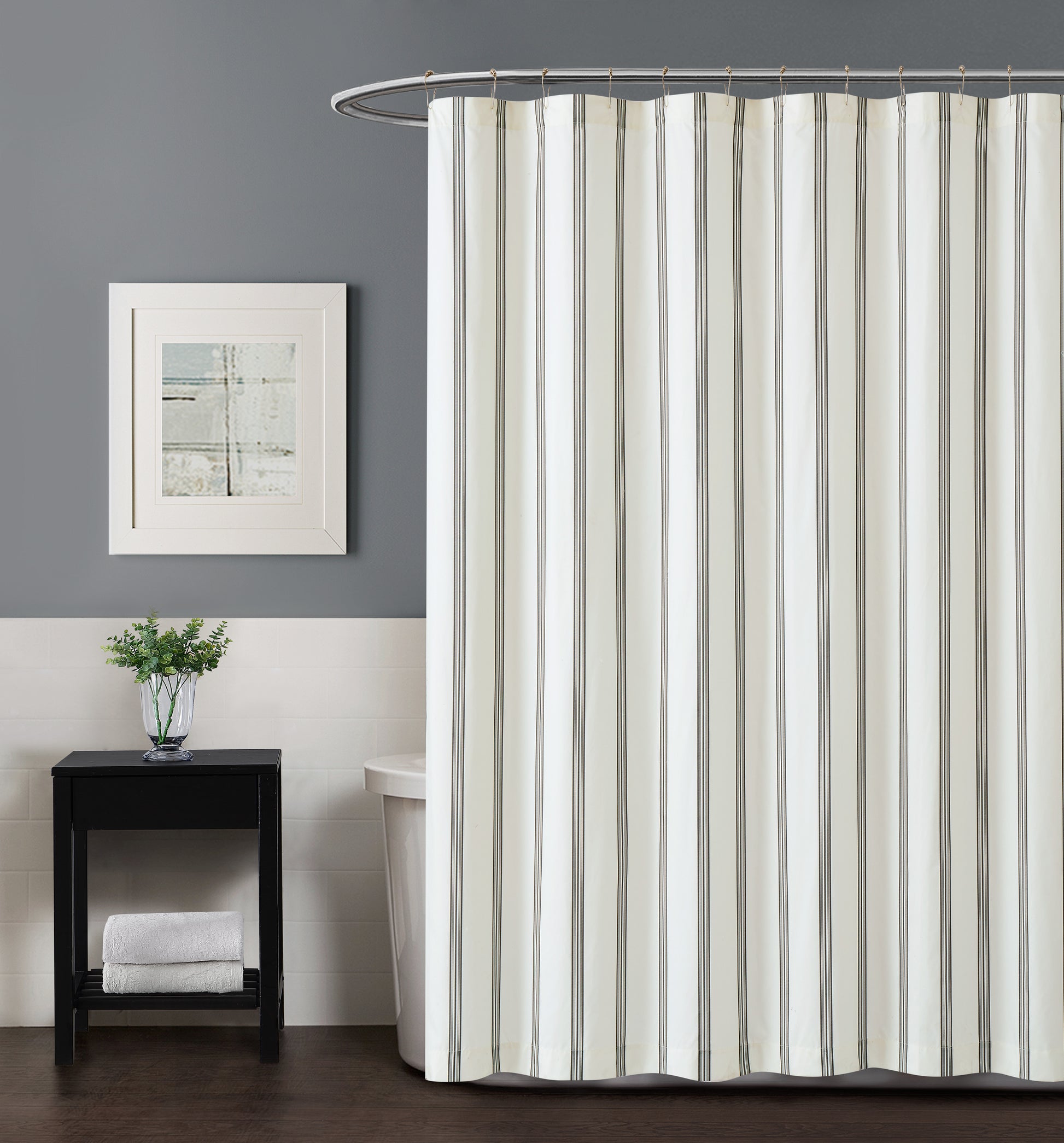 This easy to coordinate three part stripe pattern runs from head to toe on the bed for an easy and timeless coordinate. The cloth uses a black print on a solid color base cloth. The base cloth is our Truly Soft 100% microfiber polyester fabric that is double brushed for softness.